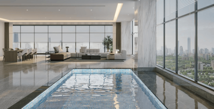 革新成都高端住宅标准,6.8米灵活双厅搭配11.9米景观阳台,322㎡户型更首创空中私属泳池,270°环幕视野重构城市天际线。