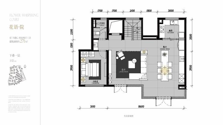 4F下叠271㎡:赠送70-80㎡端头194㎡赠送(700-900万)
