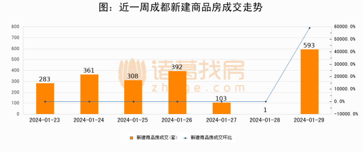 【成都成交日报】01月29日新房成交593套、二手房726套;涨价房源174套