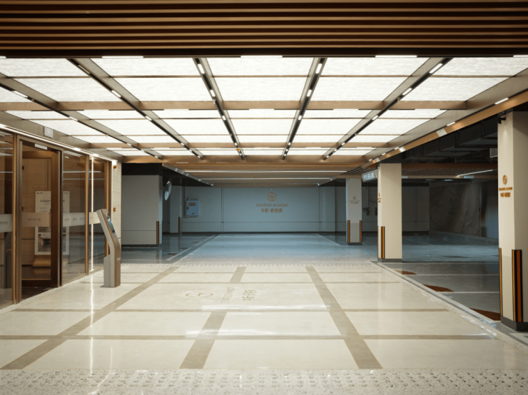 在多数项目仍采用金刚砂地坪的当下,中昕昕悦府率先使用无机磨石配合防滑涂层的地坪系统,提升车库品质与使用体验。