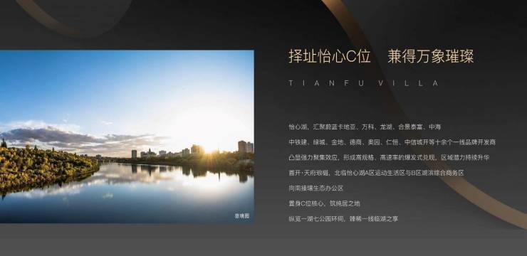 :国际化的城市界面,怡心湖是整个板块全新,没有任何的拆迁安置房,老破小。
