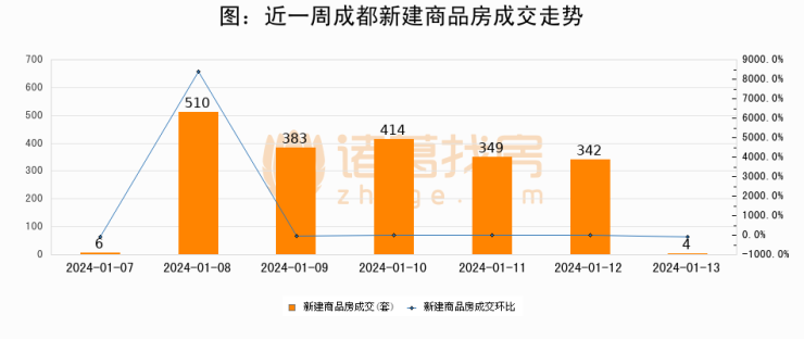 【成都成交日报】01月13日新房成交4套、二手房42套;涨价房源315套
