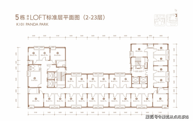 户型设计:24-34㎡精奢LOFT,层高4.2米,得房率66-110%,可改造为套一或套二;