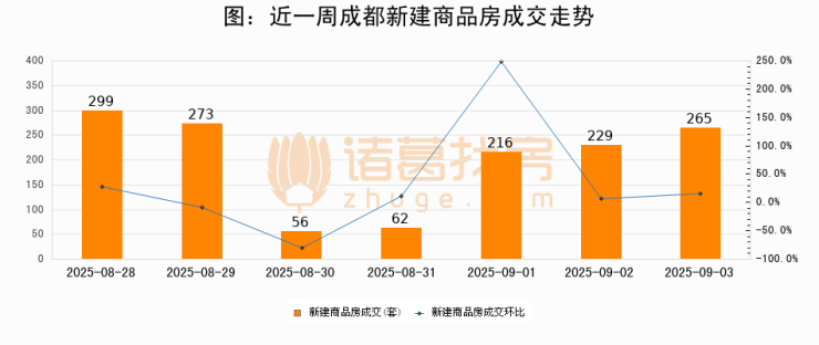 【成都成交日报】09月03日新房成交265套、二手房659套;涨价房源2套
