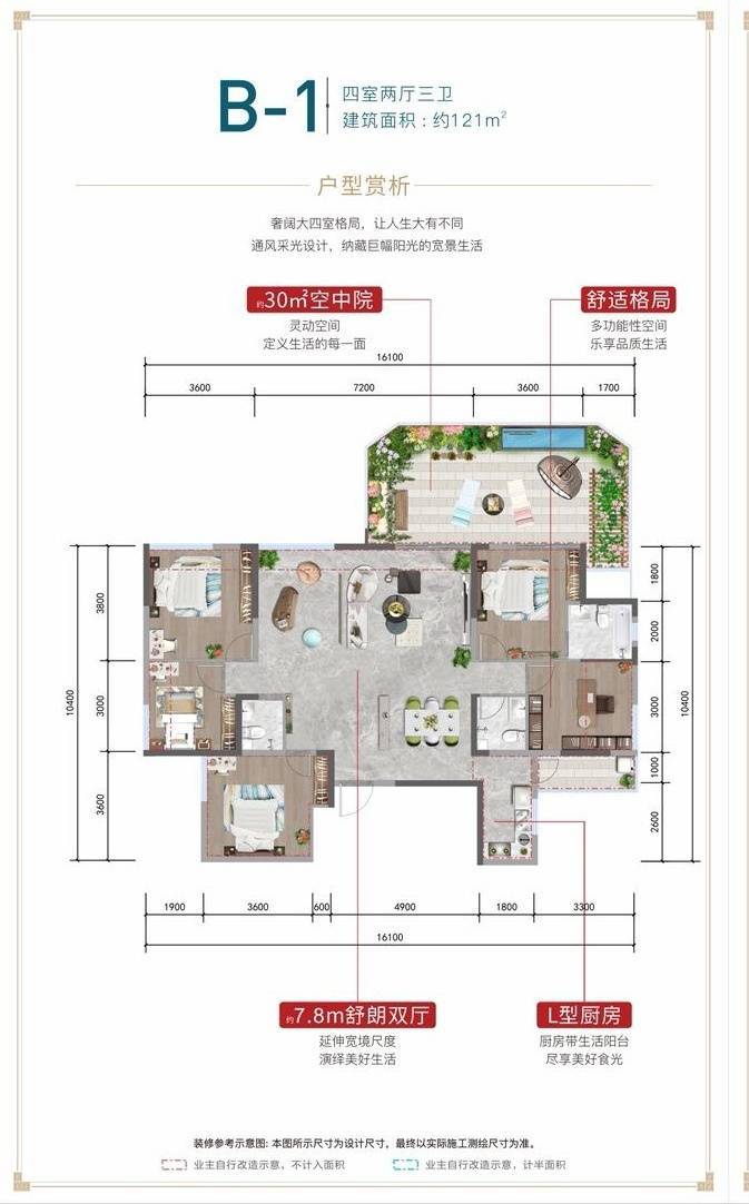 B(B-1)户型一121㎡实得188㎡,2T3户