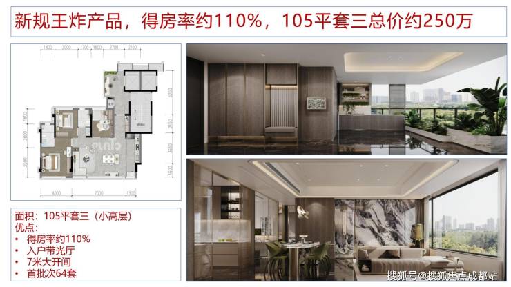 户户配置入户光厅;全系大横厅+大阳台设计;LDK一体化空间;主次卧奢适尺度保障;精研当代高端家庭生活场景所需,定制化打造人与自然强交互、人与人强交互的家庭社交型空间。