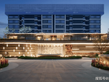 建筑形式为现代主义风格,整体造型时尚简约。 建筑颜色整体色调深灰色、浅灰色、蓝色等冷色系为主。