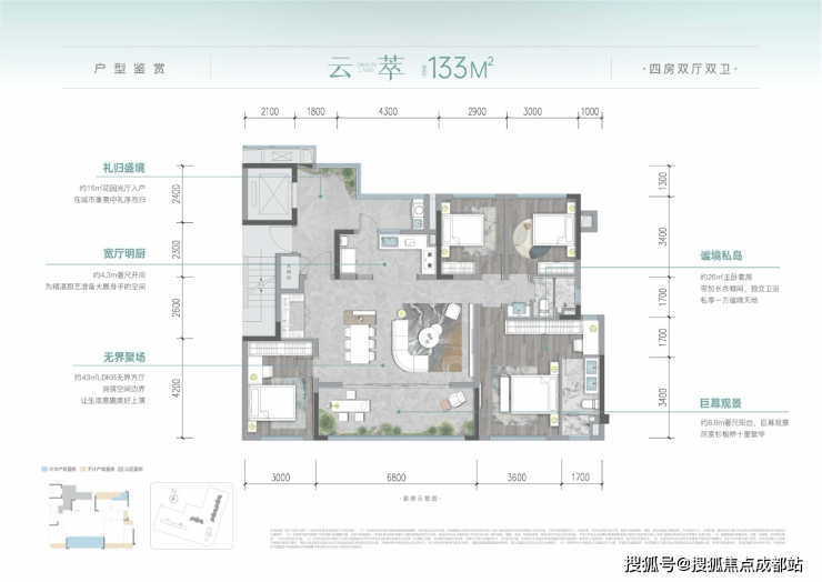 项目定位:龙湖泊萃位于成华北一路59号,隶属二八板块核心区,总占地17亩,容积率2.0,绿化率35%。项目规划4栋15-17层小高层,共182户,主打建面约112-133㎡四房户型,定位主城刚改及普通改善客群。