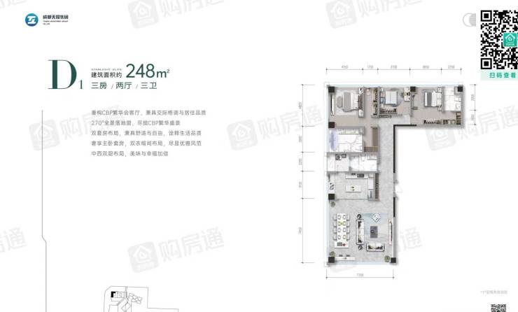 248㎡三房两厅三卫:全景视野,私密尊贵