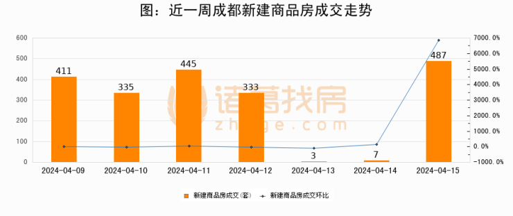【成都成交日报】04月15日新房成交487套、二手房1043套;涨价房源8套