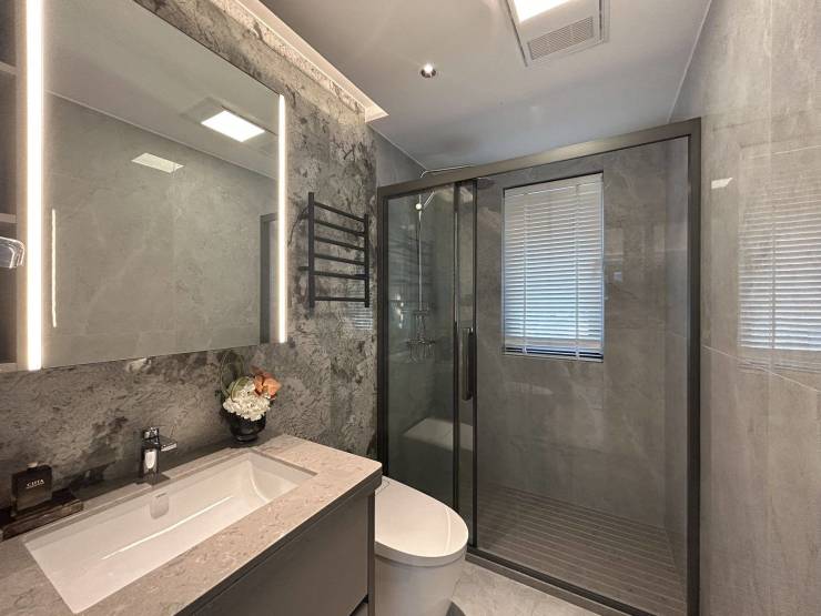 126㎡的户型为2梯2户,独立入户,拥有双面采光的电梯前厅;15米面宽+4.5开间朝南,拥有极好的日照、采光和观景效果;得房率约92%。