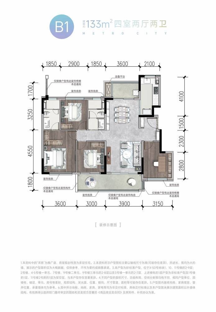 面积:112㎡套三-133㎡-139㎡-154㎡套四