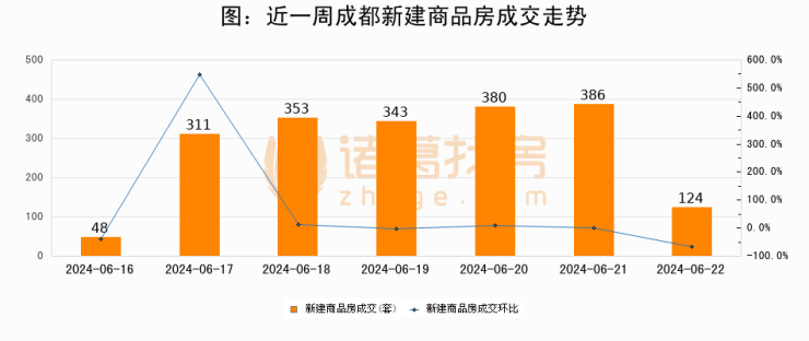 【成都成交日报】06月22日新房成交124套、二手房109套;涨价房源109套