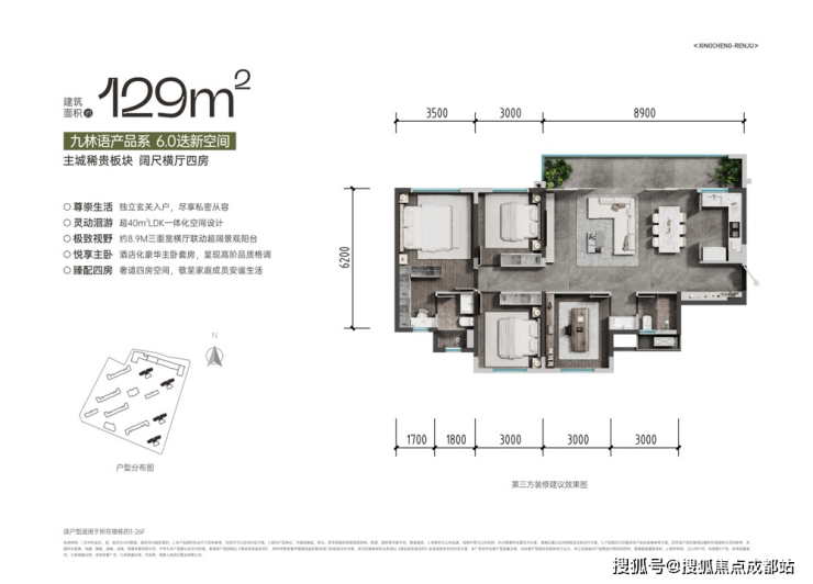 8.9M 超阔景观阳台,超 40m²LDKB 一体化空间,全采光奢适四房,功能齐全,居住体验好。