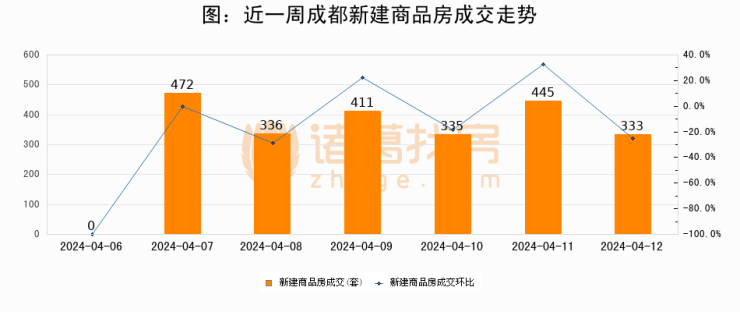 【成都成交日报】04月12日新房成交333套、二手房926套;涨价房源38套