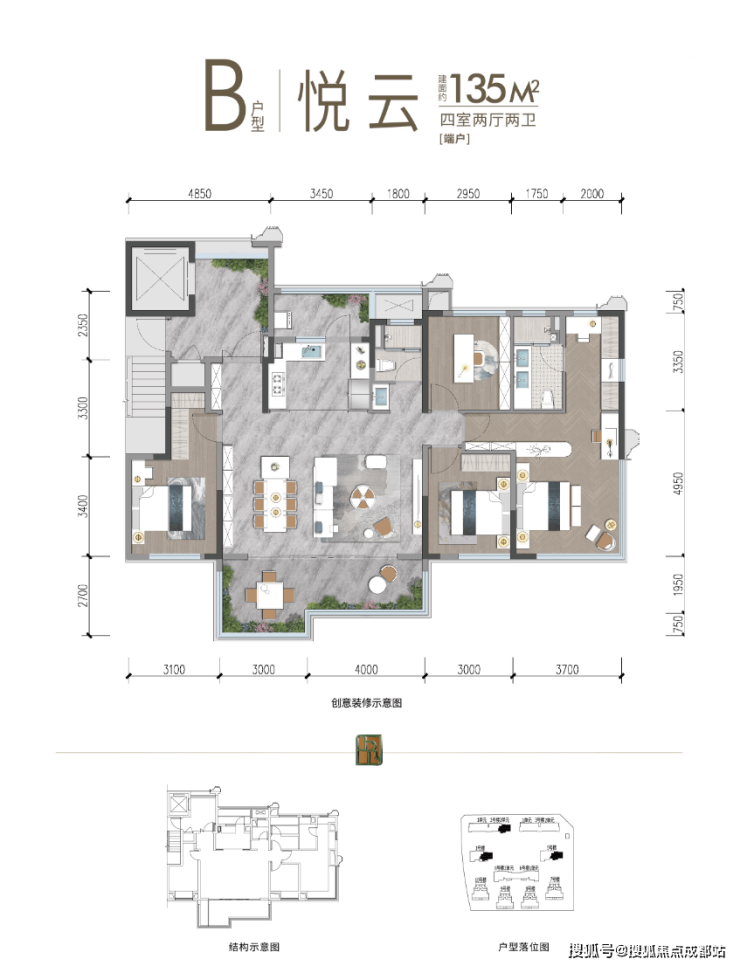 建面约135/139㎡ 新规可变五房|实际使用空间约155/165㎡