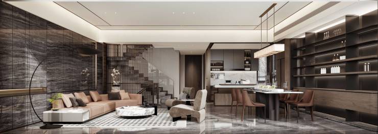 亚太IAI设计奖获得者大诠设计操刀精装,配置大金中央空调、威能地暖、霍尼韦尔新风等国际品牌。全屋智能系统实现灯光、安防、影音一体化控制,地下空间采用流动性动线设计。