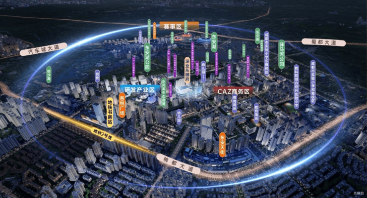《成都都市圈发展规划》出台以后,“双轴、三带”发展布局持续推进,项目位于成渝发展主轴核芯位置,立足国家及城市双重战略之上,东安新城一跃成为成都未来城市发展潜力巨大。伴随世界级赛事举办,东安湖板块配套兑现再度加码提速。