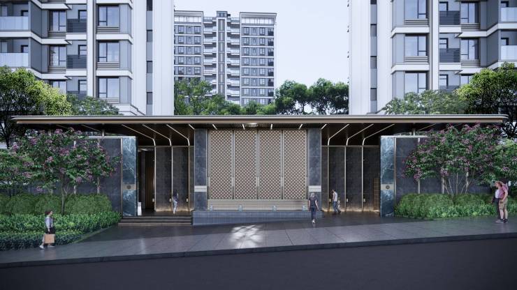 安缦酒店式入口:以奢石与金属格栅彰显贵气,打造具有高级定制酒式归家,让业主沉浸于度假氛围之中;