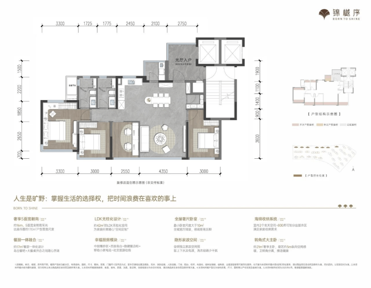 锦樾序项目占地面积约106亩,规划有28栋小高层住宅。它打造的是建筑面积约112 - 175㎡的全四房社区,容积率仅为2.0 ,营造出低密纯粹的居住环境,坚决摒弃“高低配”模式,旨在充分保障每一户的采光与视野。在此基础上,锦樾序精心构建了清晰的产品矩阵,全方位诠释了“新改善”的完整内涵。特别是首批次即将推出的建面约112㎡的小四房以及建面约139㎡的四房,从空间尺度的合理规划、功能设计的贴心考量到居住体验的极致追求,均刷新了同面积段产品的标准,有力支撑起“主城超级改善”大盘的定位。