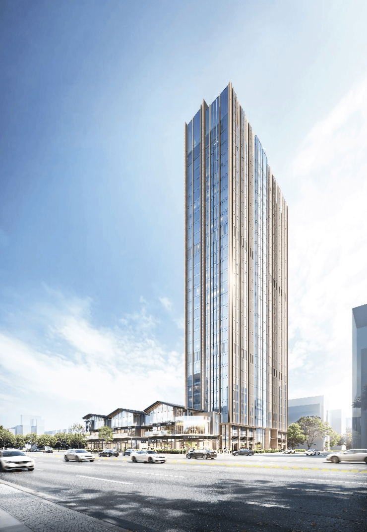 地上建筑39层,设计涵盖五星级酒店、办公两大功能区,以175米天际地标,打造城市顶流商务会客厅。