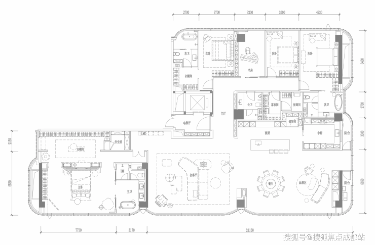 一、160 米云端超塔,220-600㎡纯粹大平层,顶豪产品力拉满