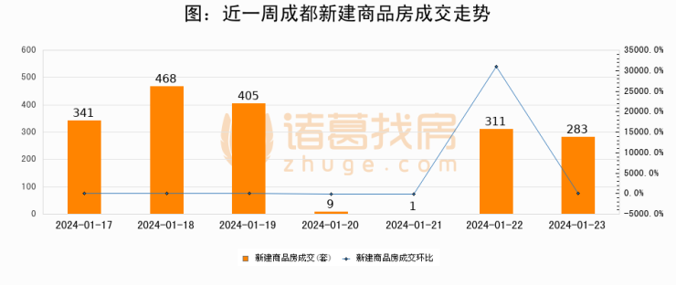 【成都成交日报】01月23日新房成交283套、二手房733套;涨价房源291套
