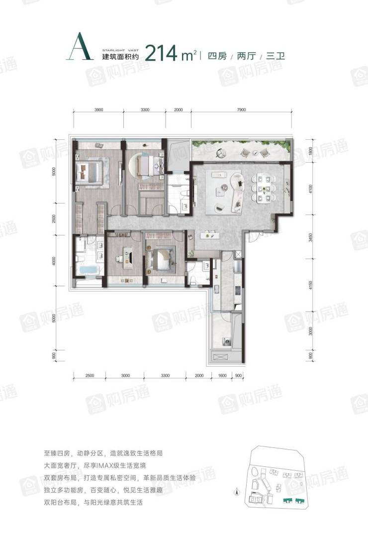 214㎡四房两厅三卫:奢阔空间,尊崇体验