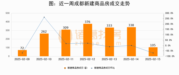 【成都成交日报】02月15日新房成交105套、二手房57套;涨价房源4套
