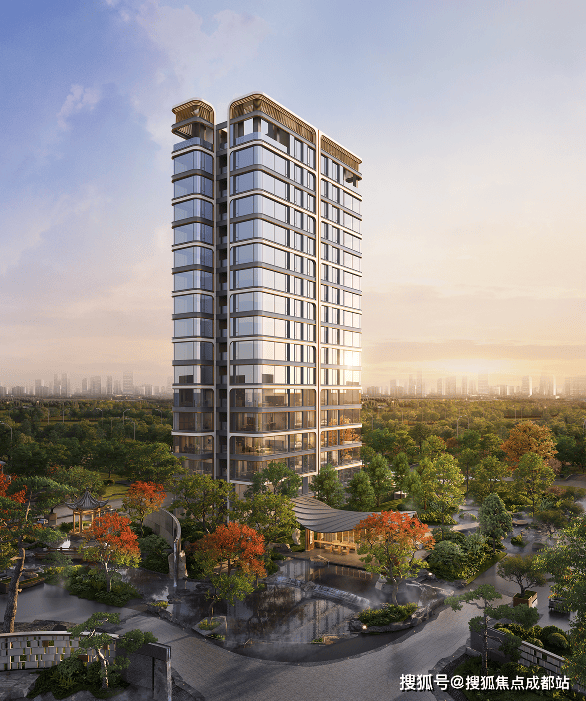 外立面选用仿石漆与香槟金矩管,搭配双层中空Low-E玻璃,融合现代线条与东方韵味。建筑细部融入楠木饰面、琉璃瓦等元素,让居所成为可收藏的美学作品。