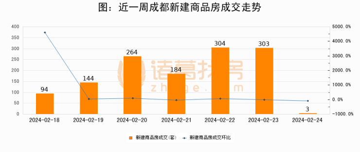【成都成交日报】02月24日新房成交3套、二手房60套;涨价房源153套