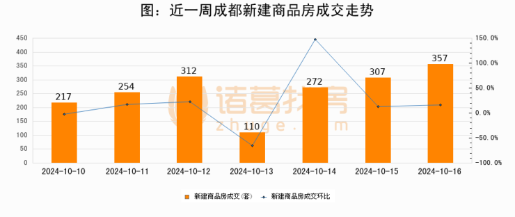 【成都成交日报】10月16日新房成交357套、二手房1000套;涨价房源155套