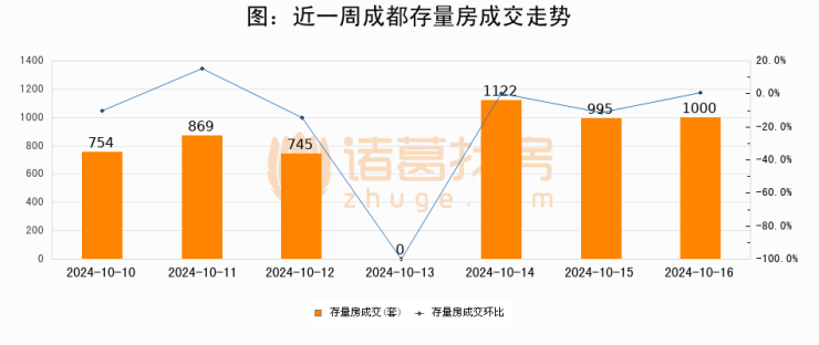 从存量房来看,2024年10月16日成都存量房单日成交1000套,比昨日增加5套,环比上涨0.5%。从近一周存量房成交来看,成都存量房日均成交套数为783套,10月16日单日成交1000套,高于近一周平均水平27.7%。