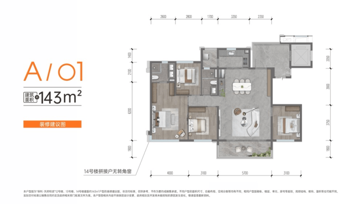 143㎡(380W-420W) 「剩余50套」1T2户总高11层