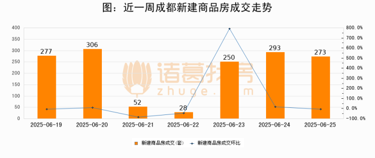 【成都成交日报】06月25日新房成交273套、二手房787套;涨价房源61套