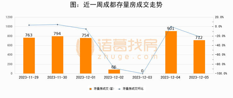 从存量房来看,2023年12月05日成都存量房单日成交712套,比昨日减少189套,环比下降21%。从近一周存量房成交来看,成都存量房日均成交套数为572套,12月05日单日成交712套,高于近一周平均水平24.5%。