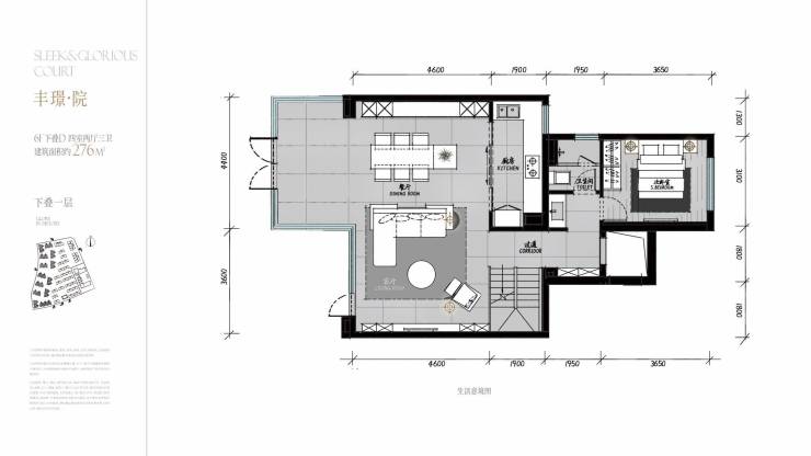6F三下叠276㎡:赠送70-80㎡端头194㎡赠送(700-900万)