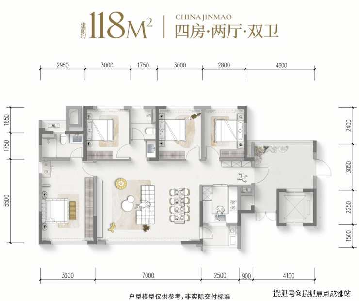 建面118㎡ 四房两厅双卫