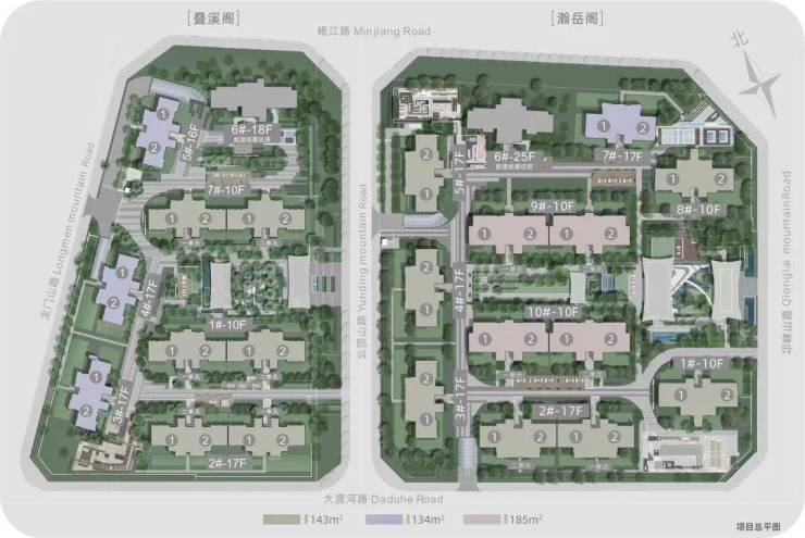 叠溪阁24亩:134-143㎡平层 221-260㎡底跃(带花园)