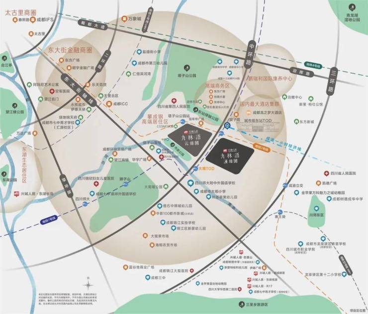 商业:就近有东客站生活圈、毗邻攀成钢商务生活圈、站南金融商圈;项目车程约5公里内可达468、锦华广场、卓锦曼购中心、万象城等;沿东大街到达春熙路、太古里、IFS约5公里左右