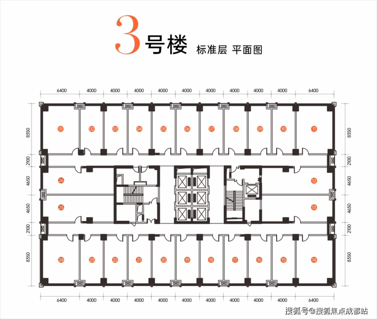平层图【3#标准层面积:约1500㎡ 】