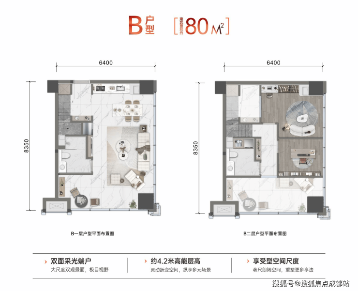 主力户型:4.2米跃变公馆 建面约50-60-80㎡