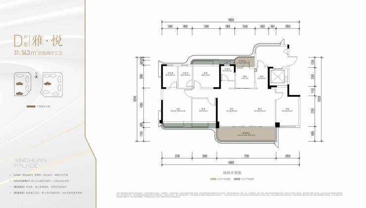 【产品面积】132㎡(套四双卫),143㎡(套四三卫 )
