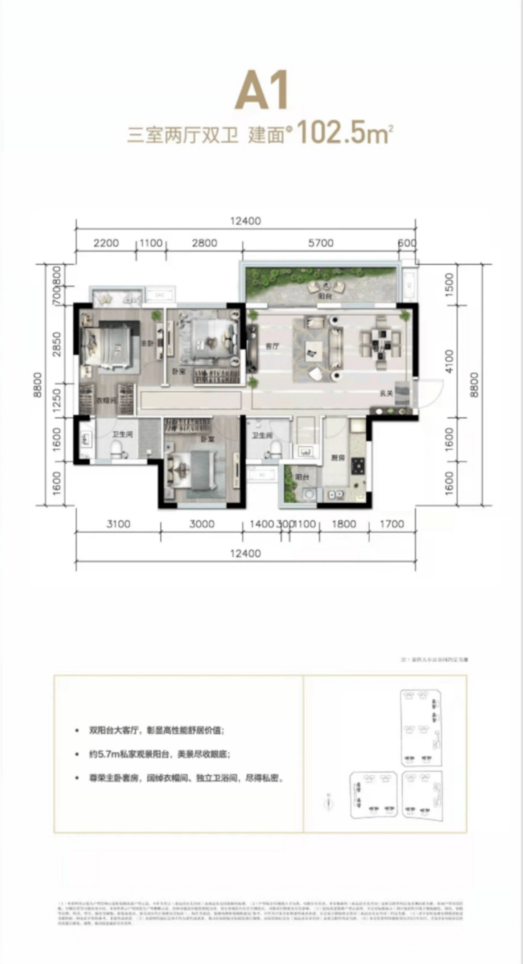 主力户型:88-120㎡三至四房
