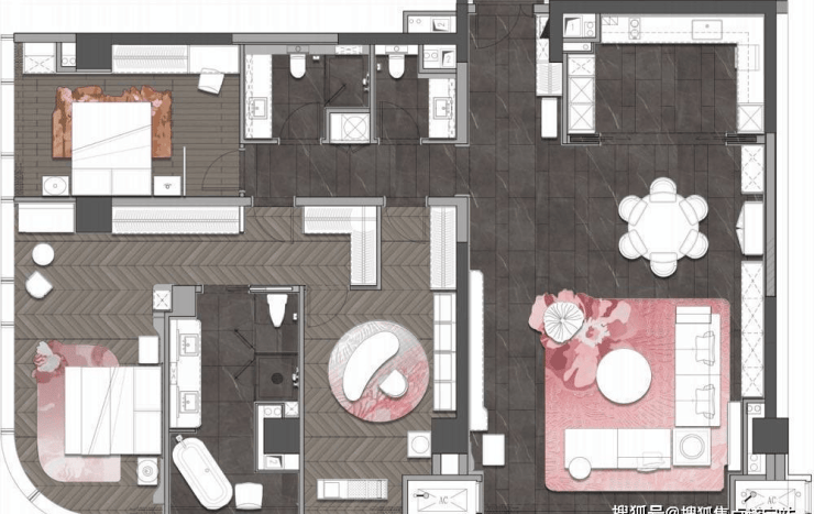 B、C户型面积60㎡、69㎡,采用精致当代的设计风格,以“无界”生活为设计主题,构建出一座给未来派 KOL(key of leader)的“定制私寓”空间。客餐厨和玄关一体化的新锐布局;放式厨房搭配功能性吧台,具备社交沙龙属性的同时又赋予家的舒适;超大尺度的落地窗景灵动套卧设计,设置豪华卫浴四件套与独立衣帽间结合;衣帽间合理的分区,大容量的收纳,质感体验与私密性交融于此。