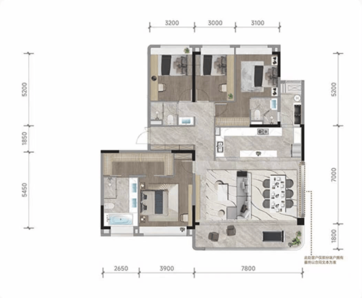 B户型|洋房|建面约199㎡|四房两厅三卫
