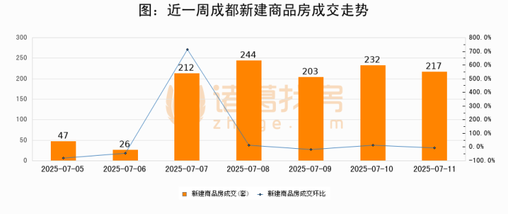 【成都成交日报】07月11日新房成交217套、二手房745套;涨价房源5套