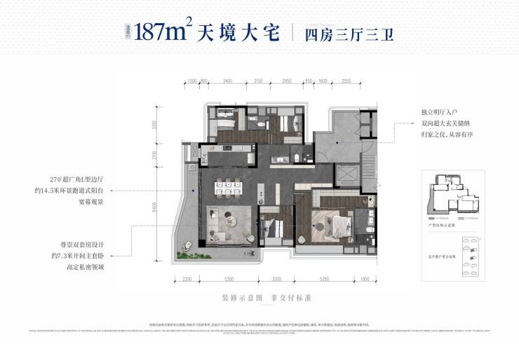 1:高新唯一在售200平内端厅户型,拥有转角跑道式阳台;