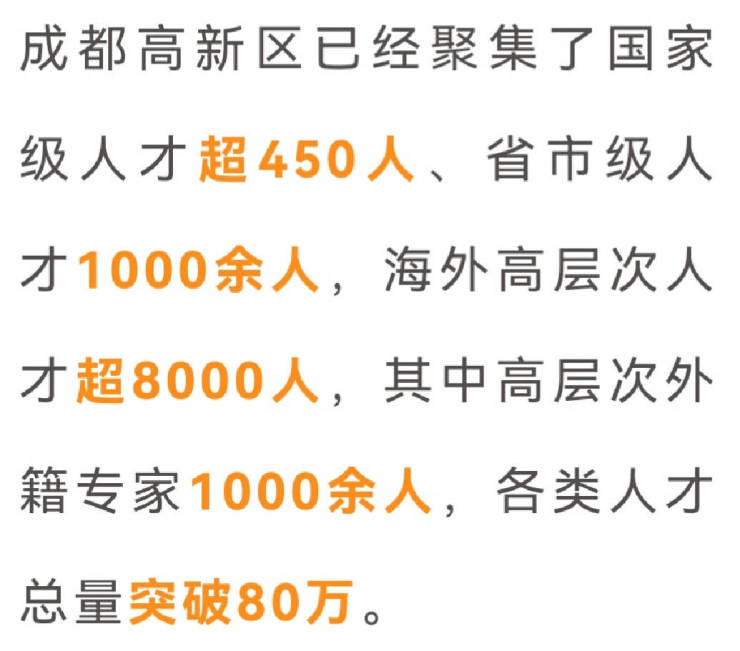 4:高新是成都经济特区,各类高层次人才80余万,占四川省五成。