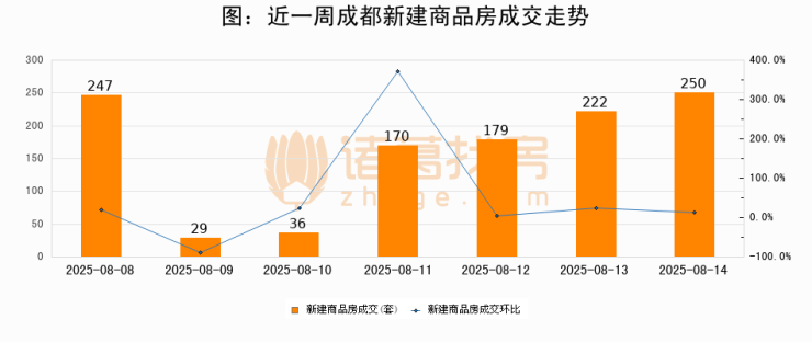 【成都成交日报】08月14日新房成交250套、二手房735套;涨价房源2套